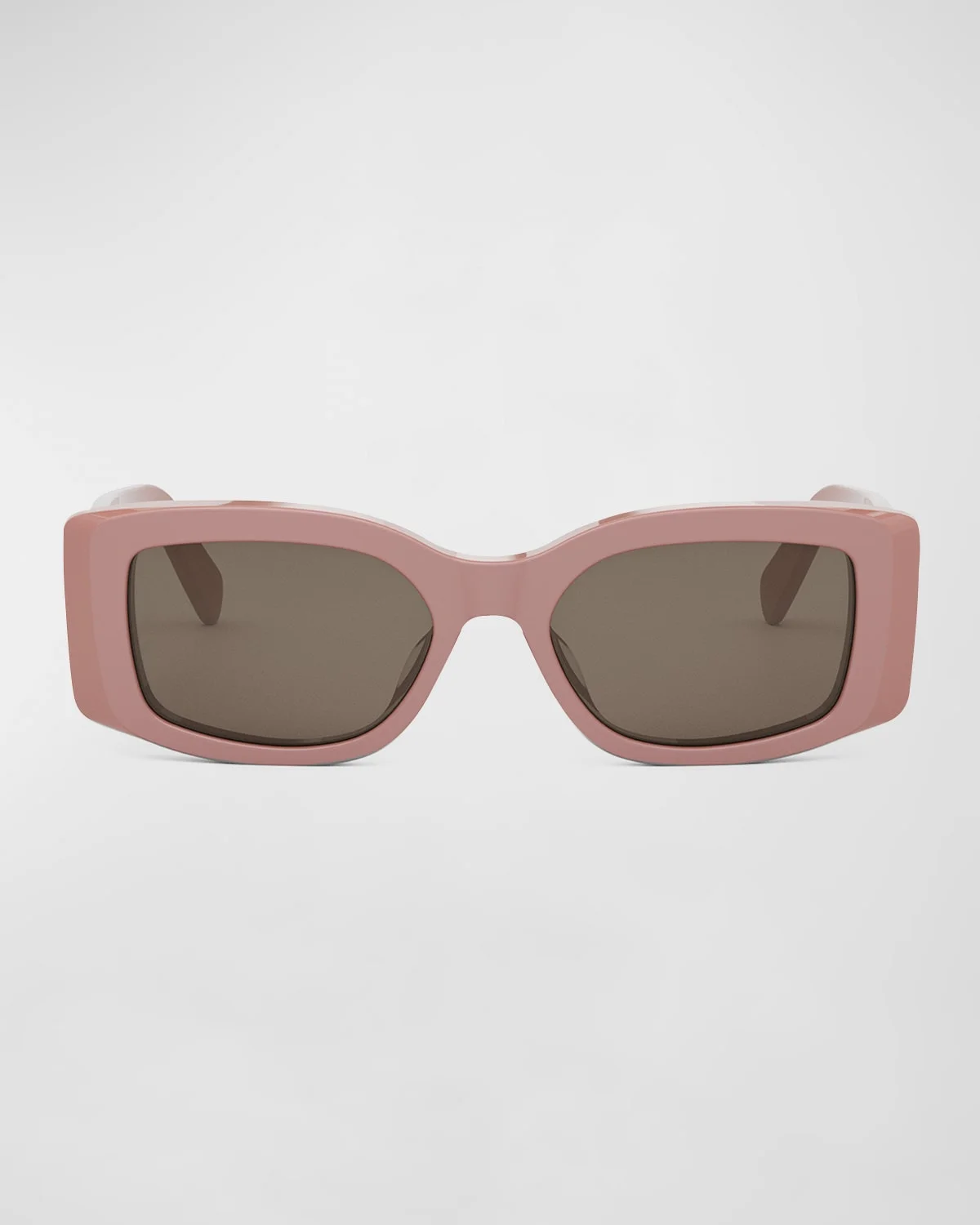 - Celine "Triomphe" rectangle sunglasses in acetate and nylon/polyamide - Lens/bridge/temple (in mm): 52-22-145 - Saddle nose bridge - Triomphe signature on temples - Wide, tapered arms - Hand wash - 100% UVA/UVB protection - Made in Italy - Proposition 65 warning for California residents