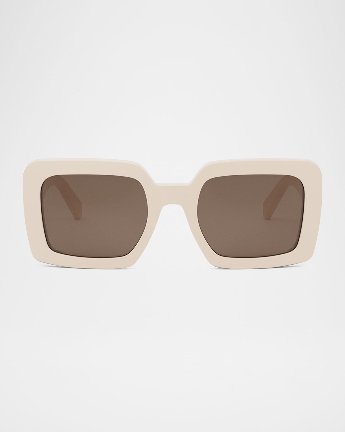 - Celine "Triomphe" square sunglasses in acetate - Eye/bridge/temple (in mm): 56-23-140 - Saddle nose bridge - Solid lenses - Signature palladium Triomphe logo on temples - Thin, tapered arms - Acetate/nylon/polyamide - Hand wash - 100% UVA/UVB protection - Made in Italy - Proposition 65 warning for California residents - This product contains perfluoroalkyl and polyfluoroalkyl substances (PFAS). For more information, please visit the manufacturer’s website.