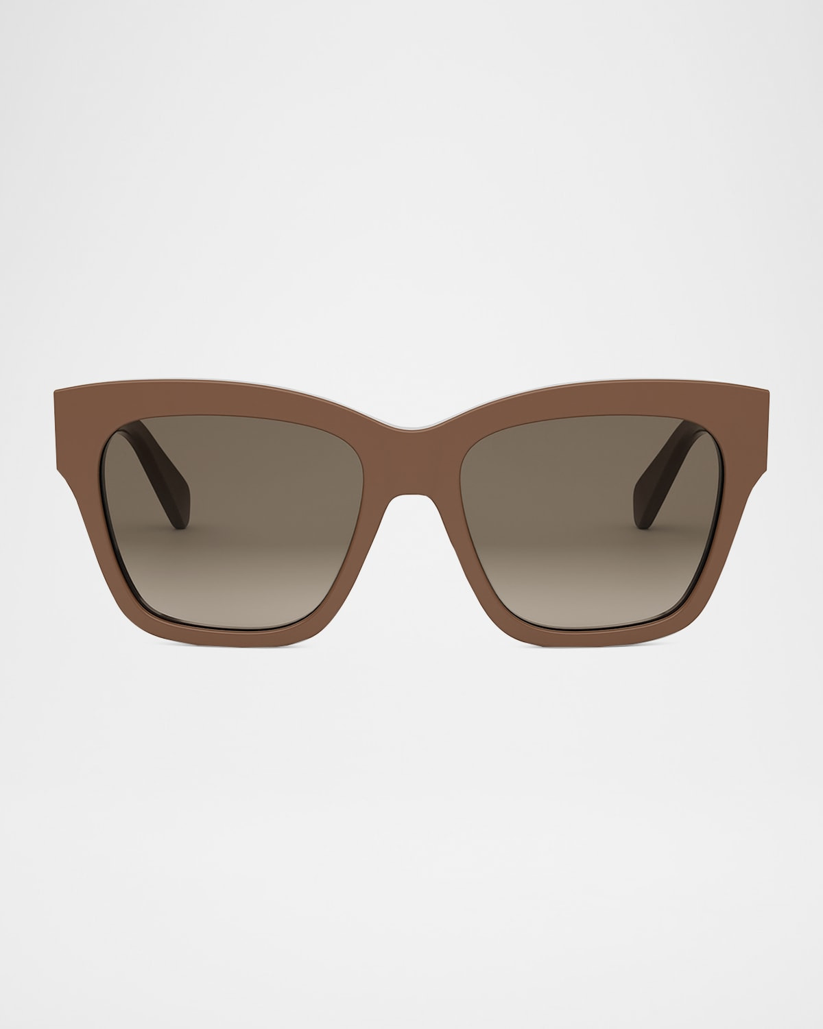 - Celine "Triomphe" square geometric sunglasses in acetate, nylon, and polyamide - Lens/bridge/temple (in mm): 55-18-140 - Gradient lenses - Saddle nose bridge - Triomphe logo on temples - Thin, tapered arms - Hand wash - 100% UVA/UVB protection - Made in Italy - Proposition 65 warning for California residents - This product contains perfluoroalkyl and polyfluoroalkyl substances (PFAS). For more information, please visit the manufacturer’s website.