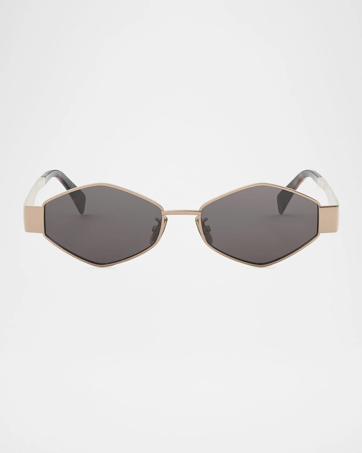 - Celine "Triomphe" metal geometrically shaped sunglasses - Eye/bridge/temple (in mm): 54-16-135 - Solid lenses - Adjustable nose pads - Thin, tapered arms - Capped earpieces - Iconic Triomphe emblem across the temples - Metal - 100% UVA/UVB protection - Made in Italy - Proposition 65 warning for California residents
