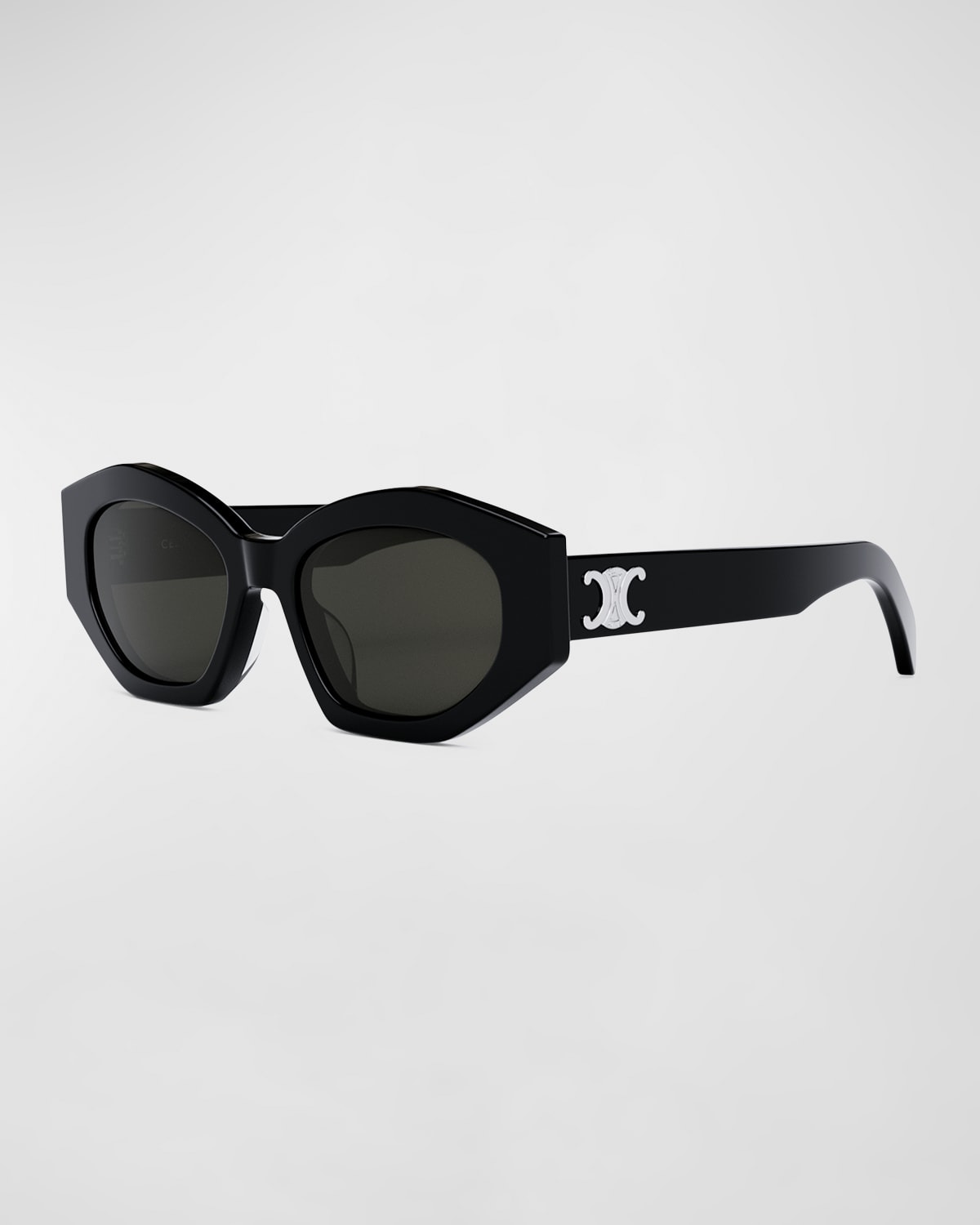 - Celine cat-eye sunglasses in acetate - Lens/bridge/temple (in mm): 55-19-145 - Palladium Triomphe logo on temples - Solid-color lenses - Wide, tapered arms - 100% UVA/UVB protection - Made in Italy - Proposition 65 warning for California residents