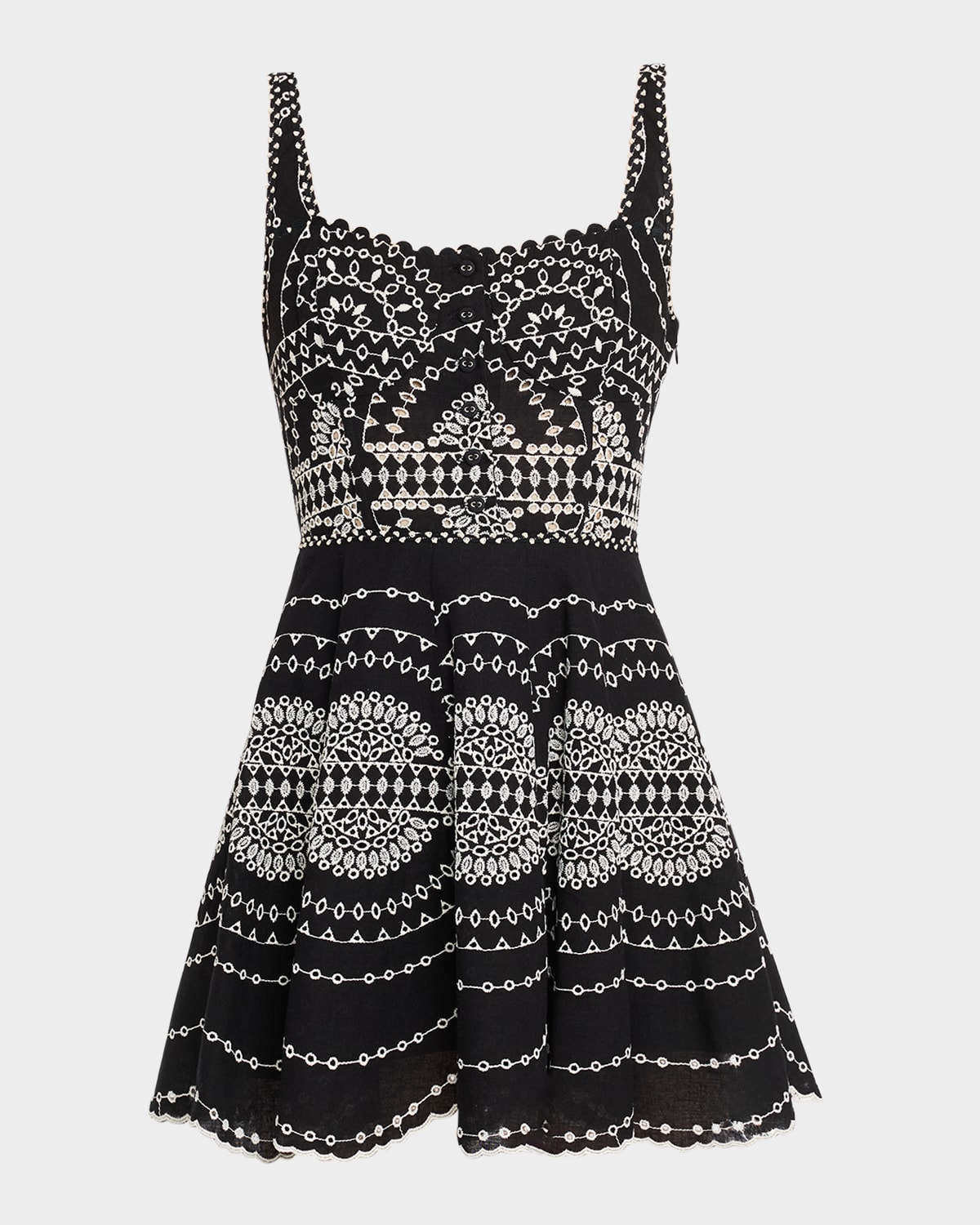 - CHARO RUIZ IBIZA "Winnie" dress in an embroidered linen-cotton blend - Square neckline - Sleeveless - Hem falls above the knee - A-line silhouette - Partial button front closure - Cotton/linen/polyester - Imported