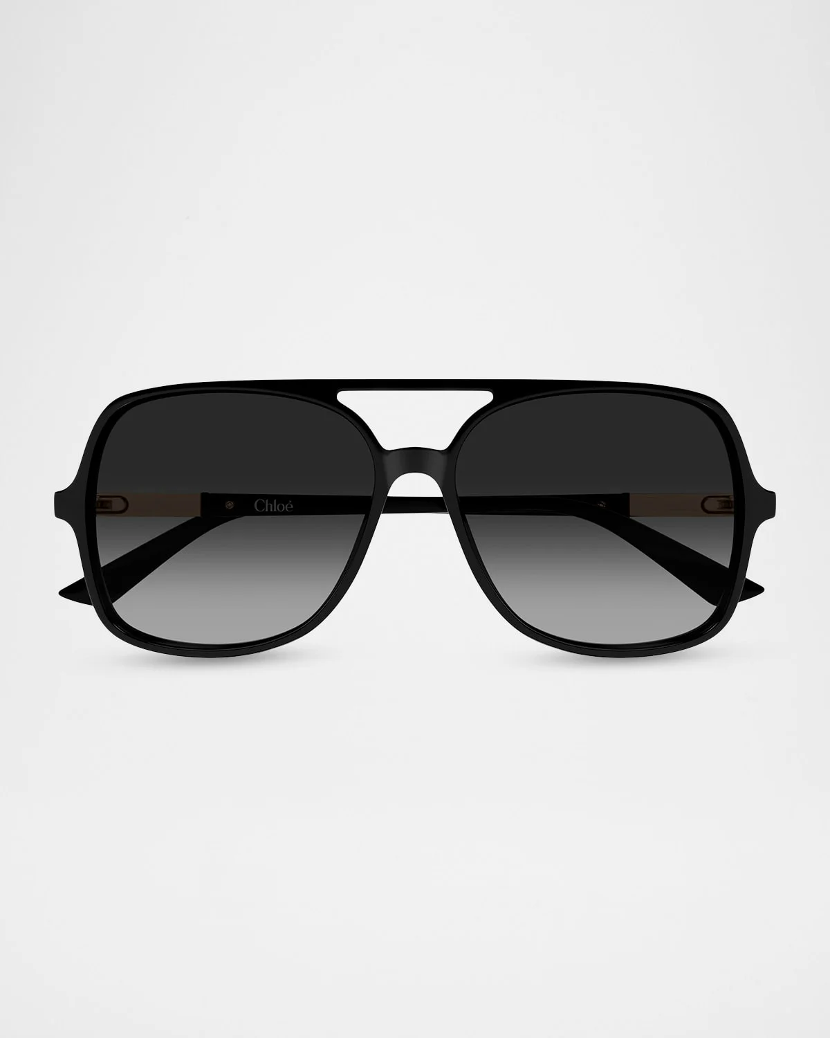 Chloe "CH0364S" sunglasses feature & nbsp;a bold, flat-top aviator silhouette with a double-bridge & nbsp;design. Eye/bridge/temple (in mm): 57-14-140 Gradient nylon lenses Saddle nose bridge Laser-engraved logo on the temples 100% UVA/UVB protection Acetate Made in Italy