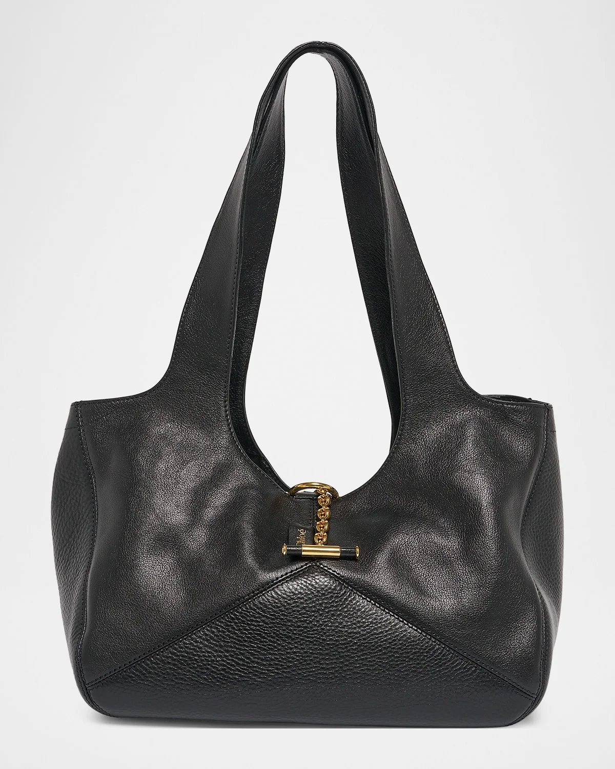 This Chloe "Balloon" tote bag is crafted of grained buffalo leather and grained calfskin leather, designed in an unstructured eastwest silhouette Flat shoulder straps, 12.2" drop Open top with toggle chain closure Approx. 8.7"H x 12.2"W x 8.7"D Made in Italy