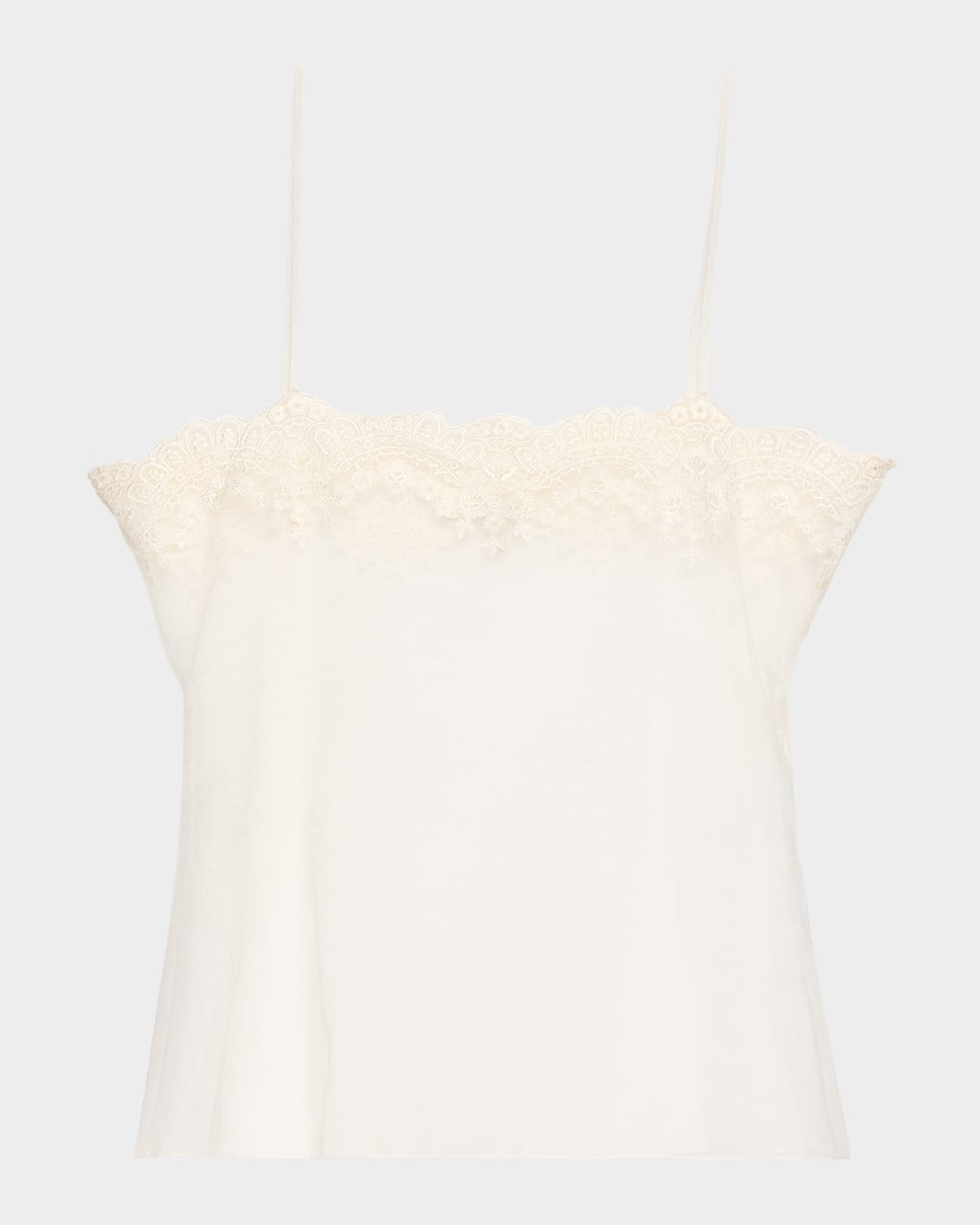 - Chloe tank top in a sheer viscose mix with embroidered lace and fabric-covered buttons at the side - Square neckline - Thin straps - Fitted - Viscose/nylon/polyamide/polyester - Imported