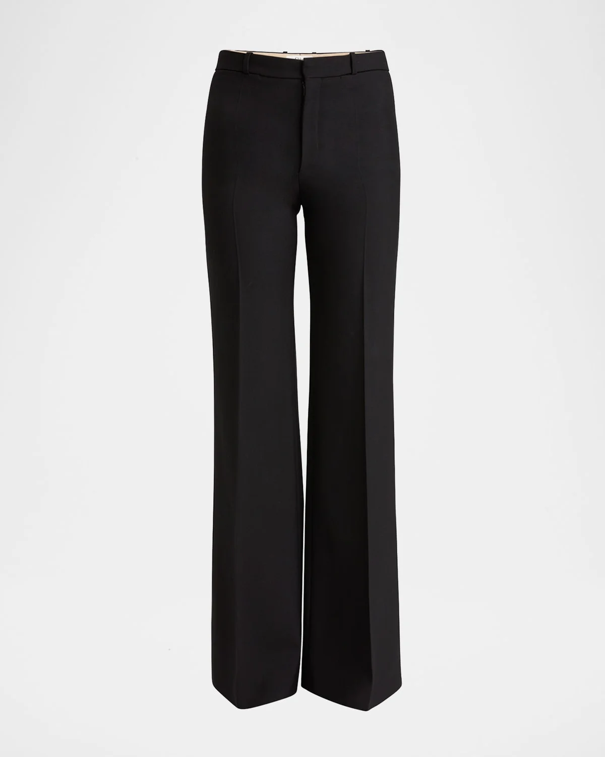 Chloe crepe pants Full length High rise Flare legs Tab/zip fly; belt loops Wool Professional cleaning recommended Imported