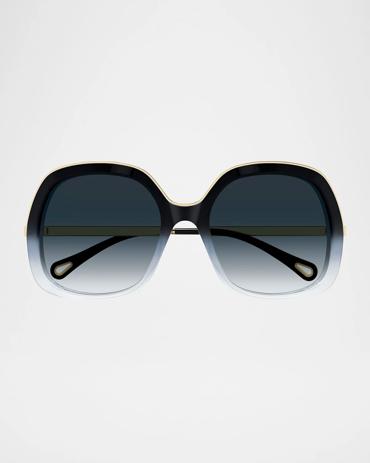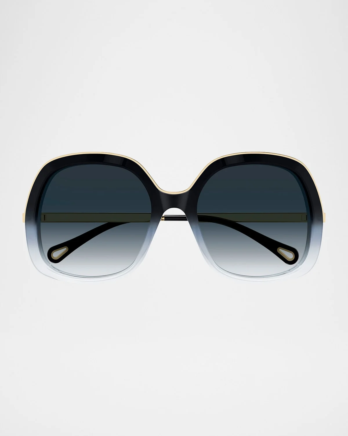The "Leia" gradient acetate sunglasses pair a 70sstyle frame with an ornamental goldtone metal insert that adorns the top for a touch of sleek style. Dropshaped openings at the temple tips make these sunglasses compatible with Chloe's eyewear jewelry. Lens/bridge/temple (in mm): 5619135 Oversized square frames Gradient lenses Fixed nose pads Thin, tapered metal arms with engraved logo script on temples 100% UVA/UVB protection Made in Italy