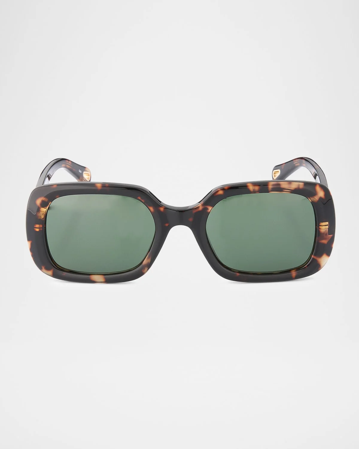 Chloe "Marchie" rectangular sunglasses crafted from Havana acetate Eye/bridge/temple (in mm): 5322140 Solidcolored lenses Saddle nose bridge Signature goldtone metal logo on the temples Dropshaped openings at the temple tips Acetate/metal 100% UVA/UVB protection Made in Italy
