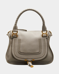 - Chloe's cult-classic 'Marcie' bag has a '70s folk feel. This black textured-leather style is impeccably crafted with signature wrapped handles, a whipstitched front pocket and gold hardware. Carry it in the crook of your arm or attach the optional shoulder strap. - Chloe "Marcie" satchel bag in calf leather - Rolled top handles, 5.5"/ 14cm drop - Detachable, adjustable crossbody strap, Min: 5.5"/14cm - Max: 40.2"/ 102cm drop - Zip top closure - Exterior, front flap with leather tassels - Interior, one zip pocket - Lining: linen - Approx. 11.1"H x 14.2"W x 4.8"D - item weighs approx. 1.8 lb./ 0.8 kg - Professional cleaning recommended - Made in Italy - Chloe is the first luxury Maison to achieve B Corp certification. By becoming certified they are taking full accountability for their impact on the people and planet while reinforcing their commitment to use business as a force for good.