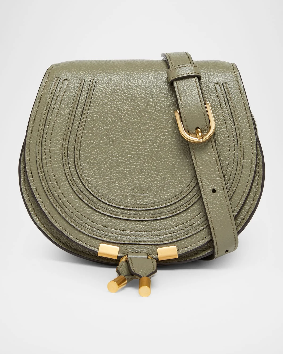 Chloe "Marcie" textured calf leather crossbody bag with whipstitch trim Adjustable convertible crossbody strap, 19.5"24" drop Flap top with leather tassels Exterior, one slip pocket under flap Interior, one slip pocket Lining: linen Approx. 6.7"H x 7.1"W x 4"D Professional cleaning recommended Item weight: 1 lbs. Made in Spain