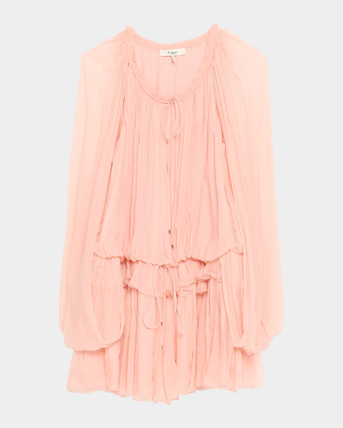 MINI CAPE DRESS IN SILK MOUSSELINE