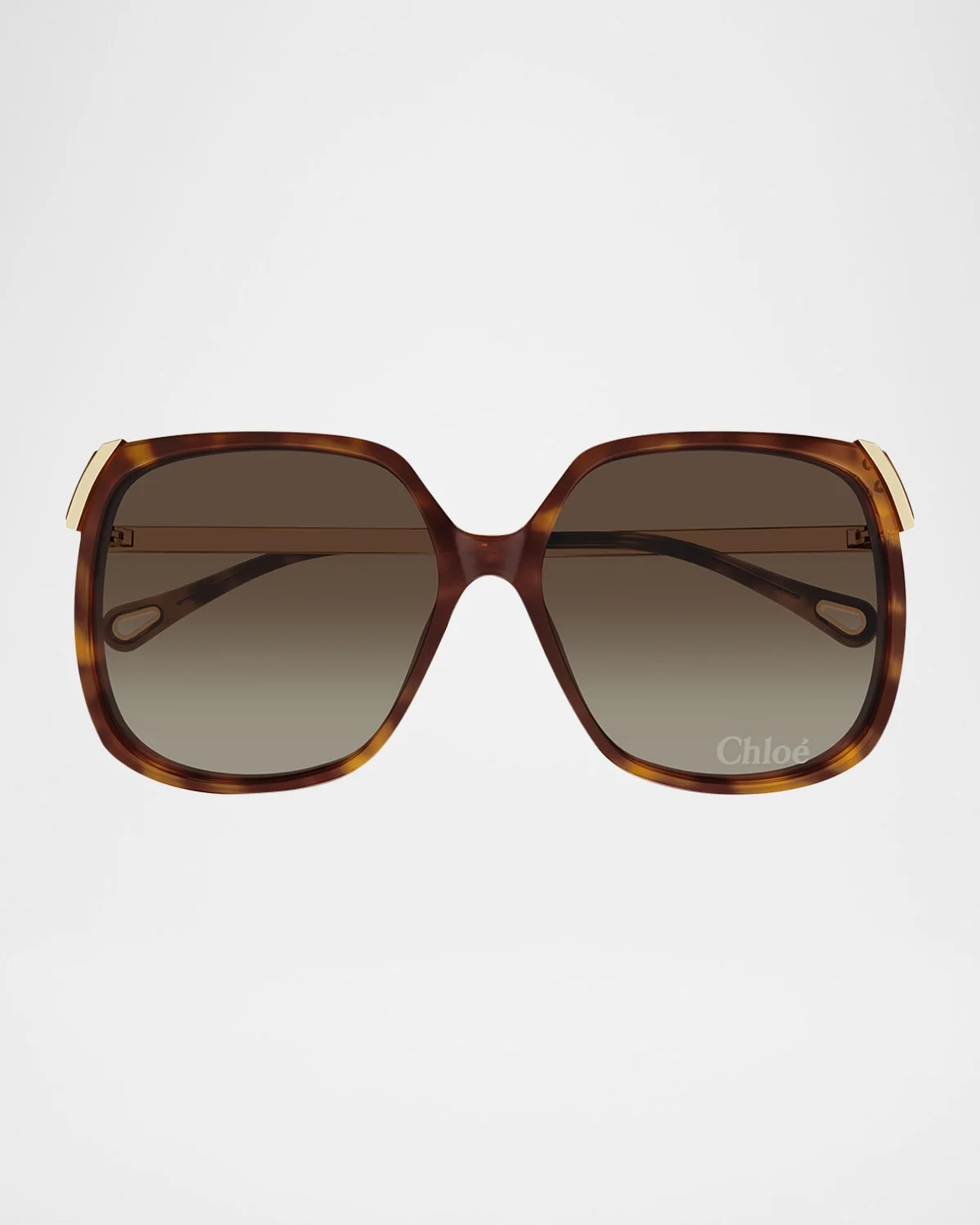- Chloe round sunglasses in actate - Eye/bridge/temple (in mm): 60-15-140 - Gradient lenses - Saddle nose bridge - Thin, tapered arms - Logo at lens - Acetate - 100% UVA/UVB protection - Made in Italy - Proposition 65 warning for California residents