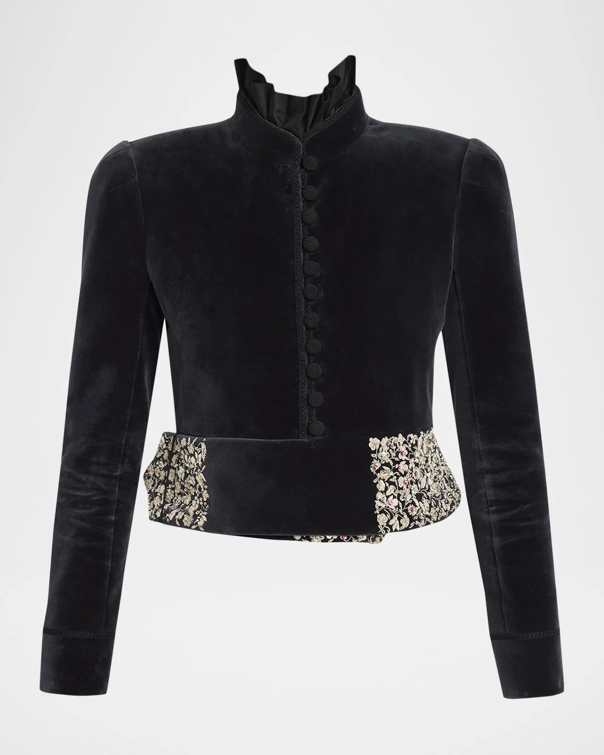 Spencer Embroidered-Belt Velvet Crop Jacket