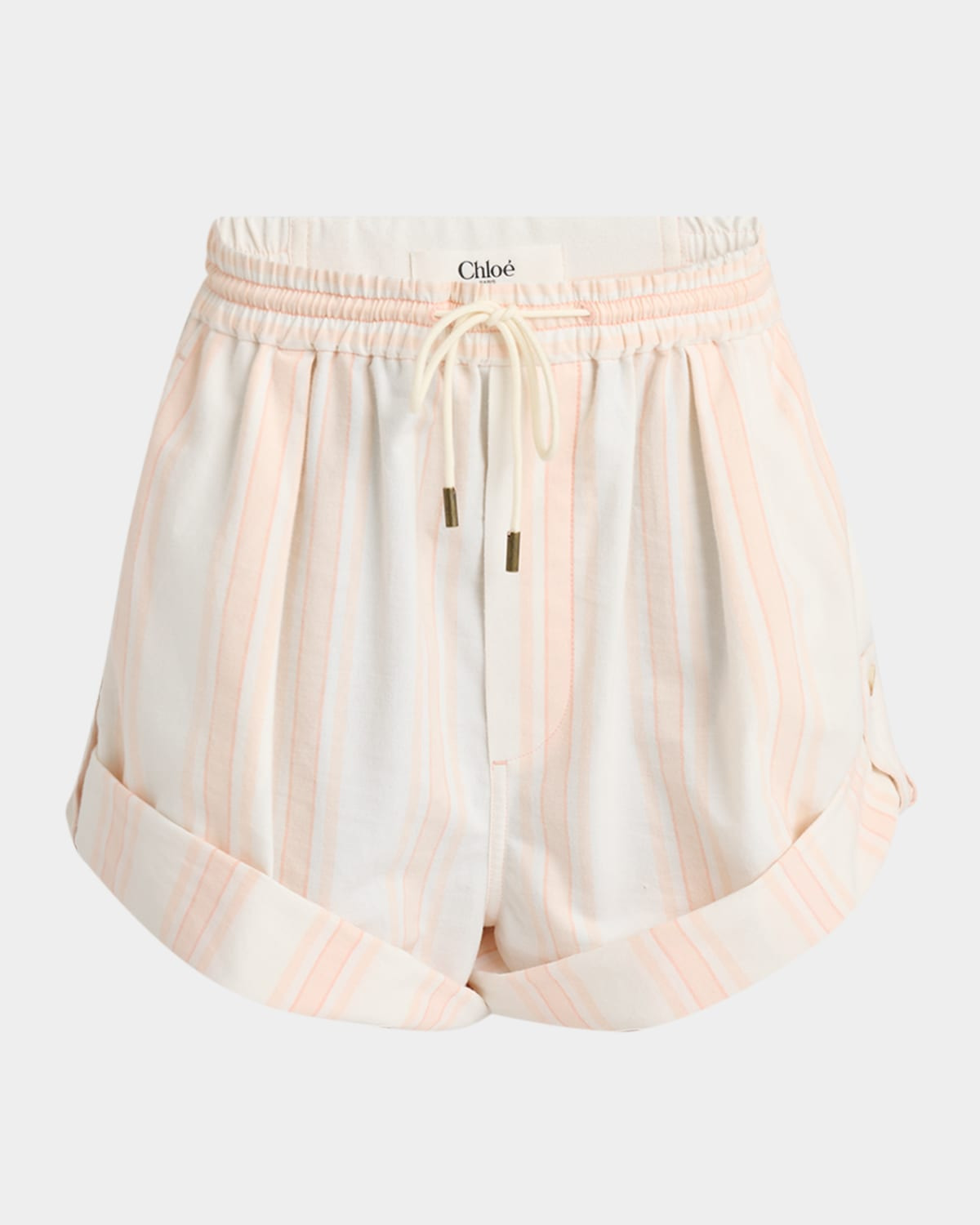- Chloe striped shorts featuring a drawstring waistband and roll-tab hem - Mid rise sits high on hip - Side slip pockets - Easy legs - Pull-on style - Cotton - Made in Italy
