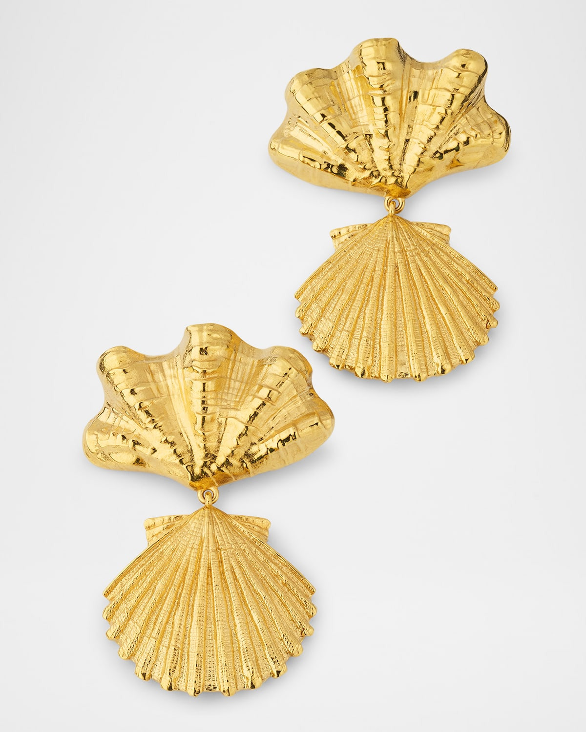 - Chloe earrings in vintage gold-tone brass, featuring two large shells of varying shapes - Logo engraving finish - For pierced ears - Pin and clip closure - Made in Italy