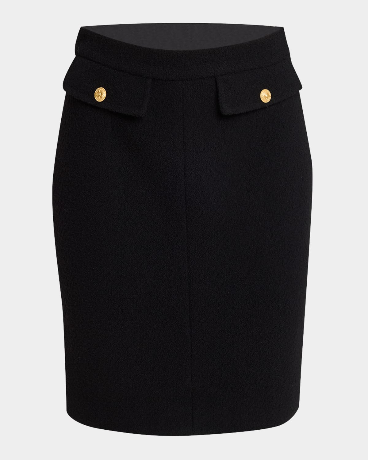 - Chloe tweed pencil skirt featuring hip flap pockets with goldtone buttons - Mid waist - Knee length - Skirt falls straight from hip to hem - Hidden closure - Wool/nylon/polyamide - Imported