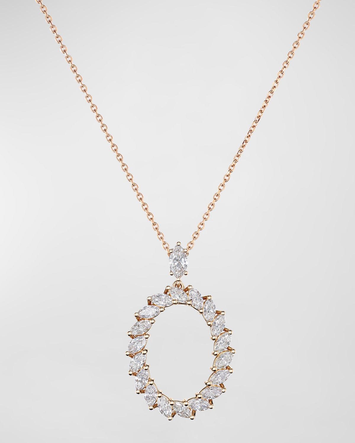 - With Chopard's L'Heure du Diamant jewelry collection, diamonds truly are forever. In a stunning display of style and craftsmanship, L'Heure du Diamant is a luxurious ode to femininity, as diamonds sparkle in a never-ending celebration of light. Precious Hours - Chopard oval pendant necklace from the L'Heure du Diamant collection - Approx. 18-20" length - 18-karat rose gold - Marquise-cut white diamonds - Total carat weight: 3.3 - Adjustable length - Lobster clasp - Made in Germany - Care Instructions: - Wash with a non-chemical liquid soap. Rinse piece under water, avoiding any stones. - Chopard Style # 79A061-5001