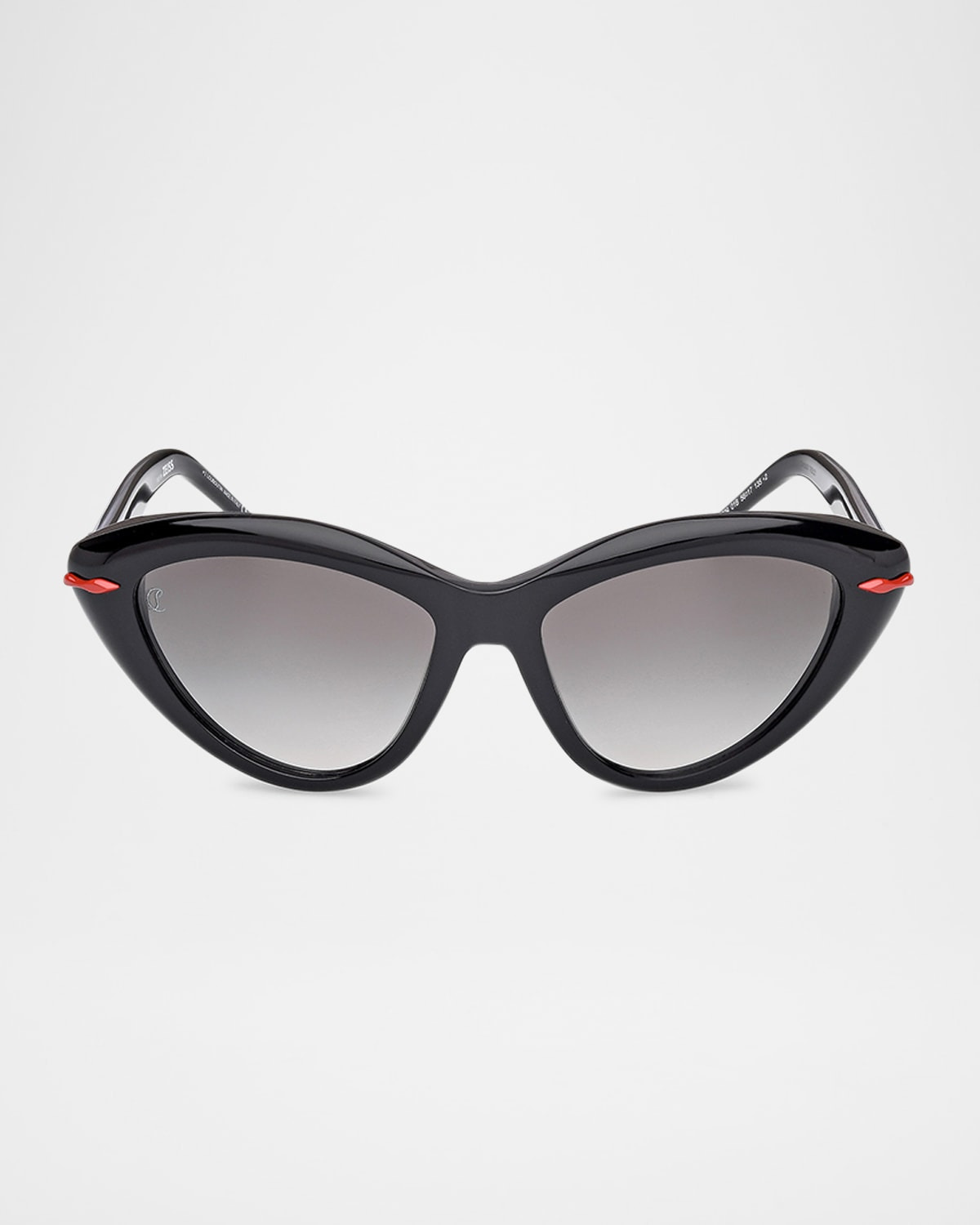 - Christian Louboutin cat-eye sunglasses in acetate - Eye/bridge/temple (in mm): 56-17-135 - Gradient lenses - Saddle nose bridge - Thin, tapered arms - Logo at lens - Acetate - Spot clean - 100% UVA/UVB protection - Made in Italy - Proposition 65 warning for California residents