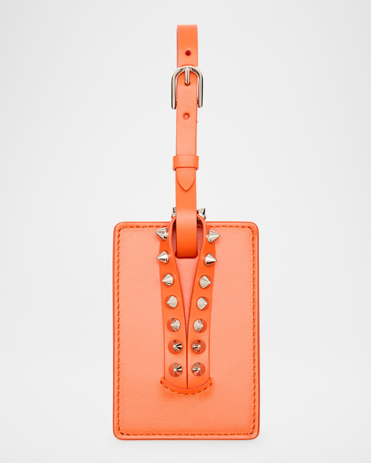 - Christian Louboutin "Cabata" luggage tag in smooth calf leather, studded with signature spikes - Adjustable buckle fastening - Approx. 3.9"H x 2.8"W - Made in Italy