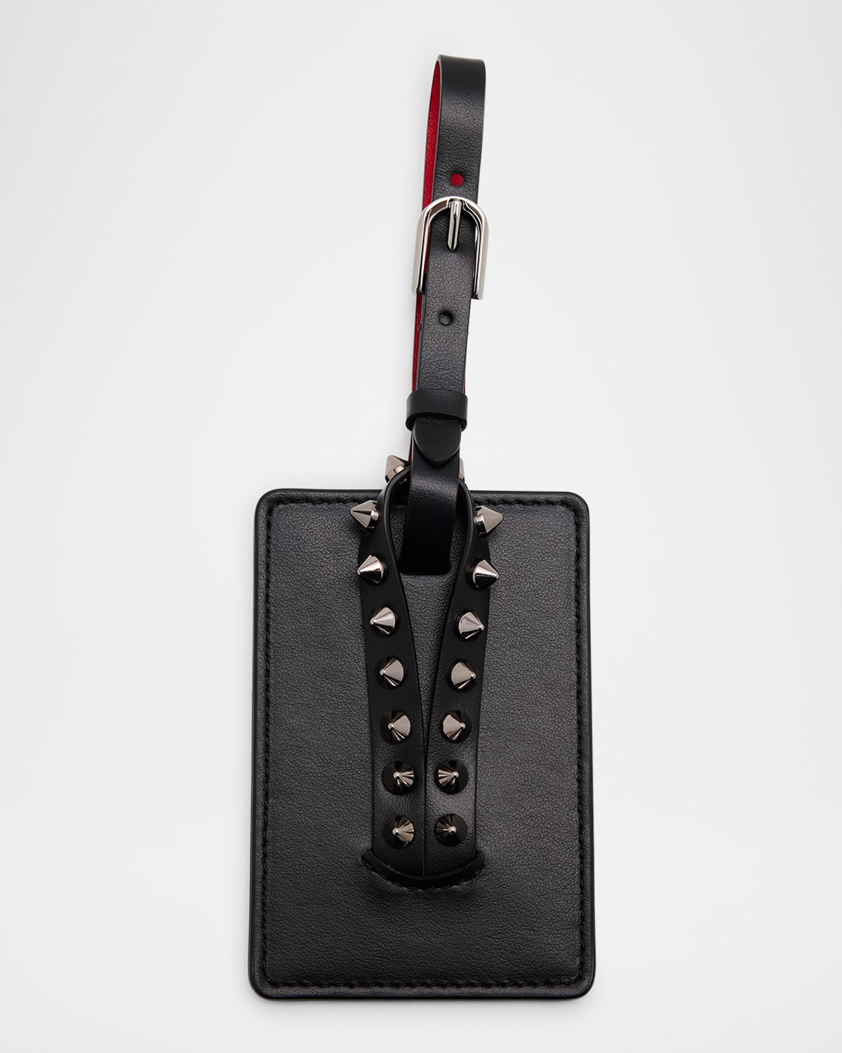 - Christian Louboutin "Cabata" luggage tag in smooth calf leather, studded with signature spikes - Adjustable buckle fastening - Approx. 3.9"H x 2.8"W - Made in Italy