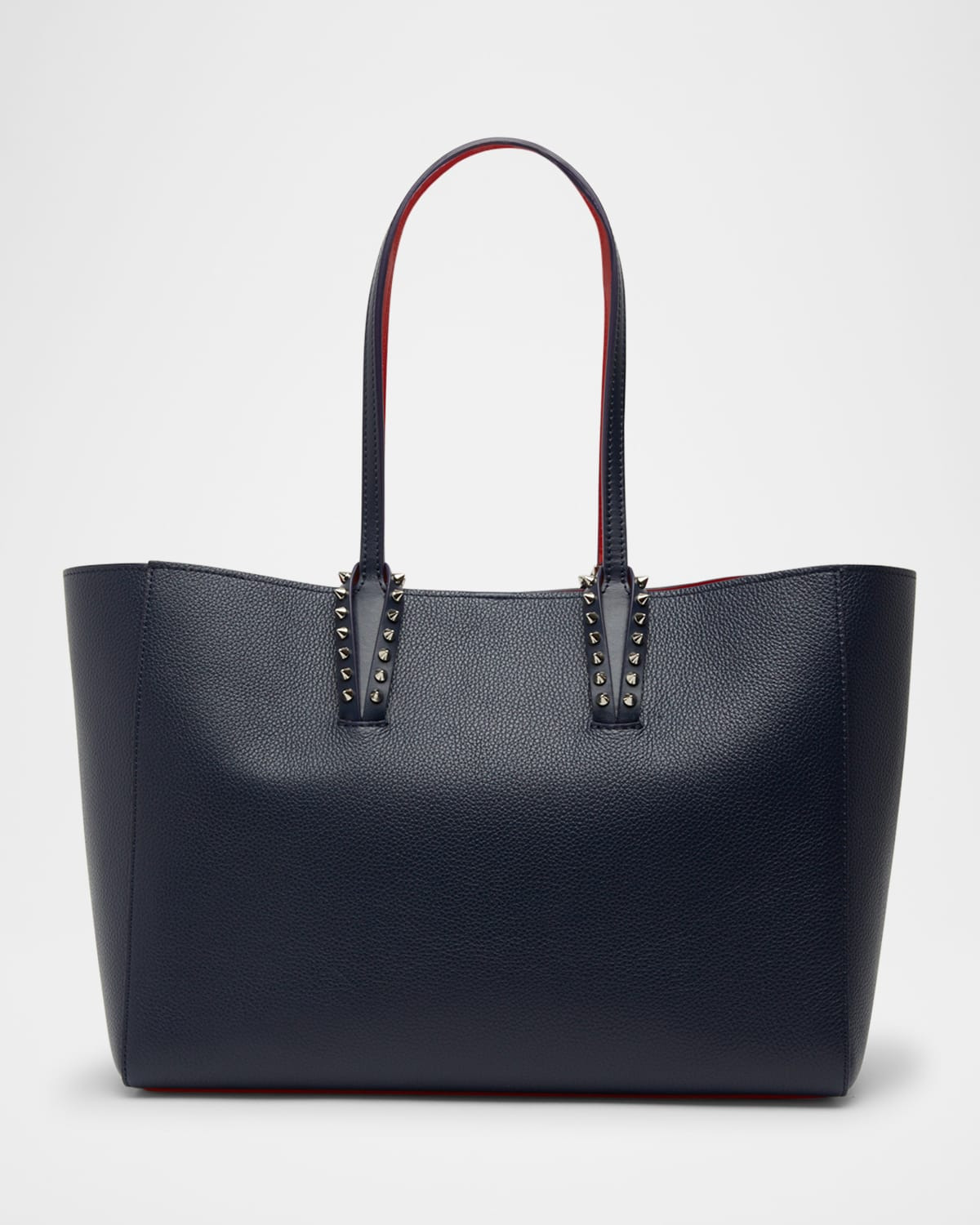 - Christian Louboutin "Cabata" soft tote bag in grained leather - Shoulder straps with spike trim - Open top with lobster clasp closure - Interior, leashed zip pouch bag - Signature red lining - Lining: Leather - Rubber logo bottom - Approx. 9.4"H x 13.4"W x 5.5"D - Made in Spain