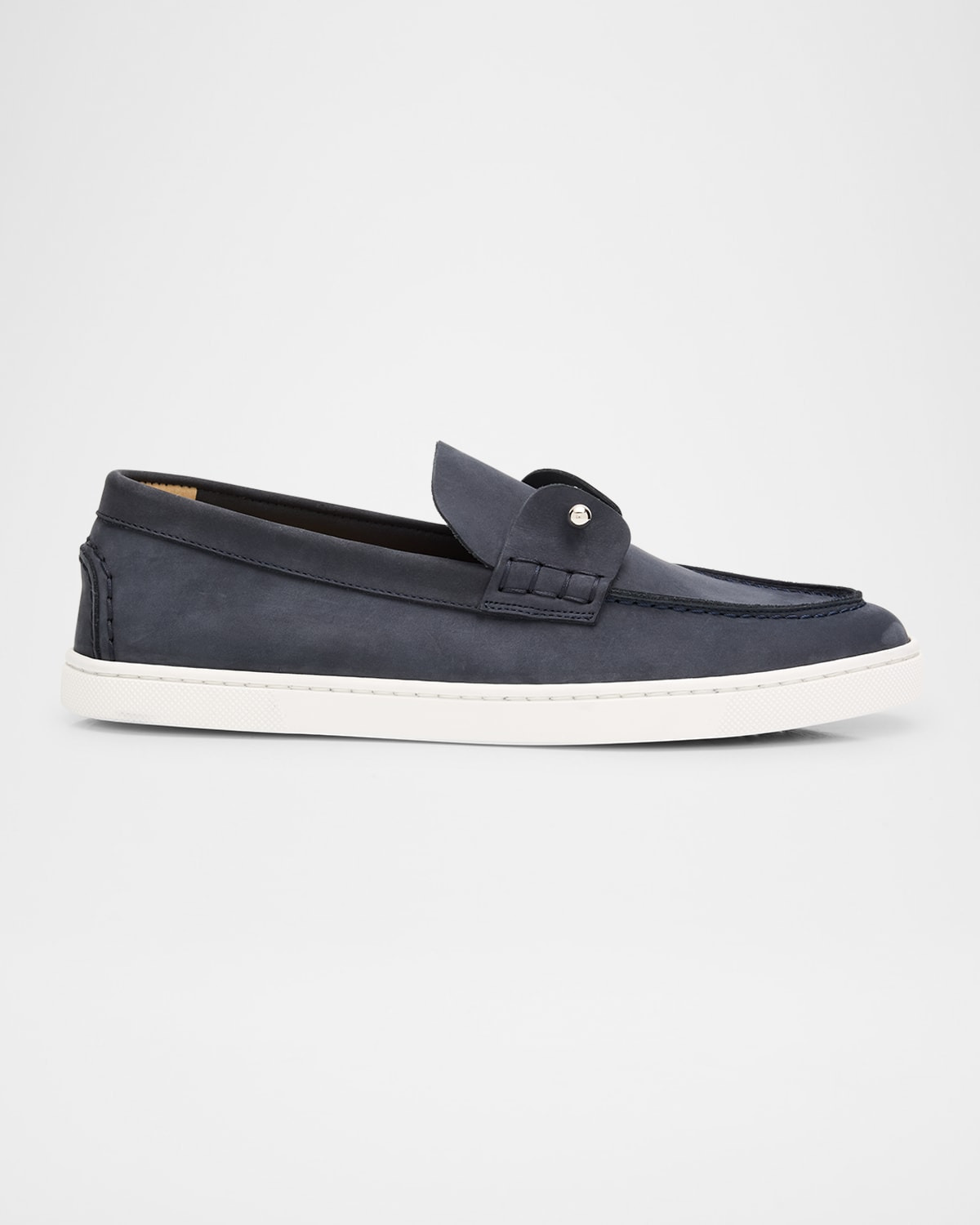 - Christian Louboutin "Chambeliboat Donna" boat shoes crafted of nubuck calf leather - Flat heel - Round apron toe - Metal collar pin - Slip-on style - Rubber outsole - Lining: Leather - Made in Italy