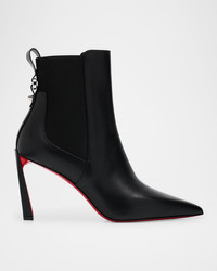 - Crafted with a smooth Italian calf leather construction, the Condodo boots by Christian Louboutin feature signature spike hardware - 3.25 in / 85 mm stiletto heel - Pointed toe - Elastic gored sides - Pull-tab at backstay - Pull-on style - Signature Louboutin red leather outsole - Made in Italy