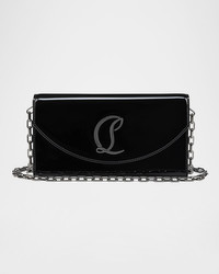 - Christian Louboutin "Loubi54" clutch bag in patent leather - Chain shoulder strap - Can be worn as a clutch or shoulder bag - Flap top with magnetic closure; CL logo accent - Interior, three card slots - Signature red lining - Approx. 4.7"H x 8.7"W x 2.2"D - Made in Italy