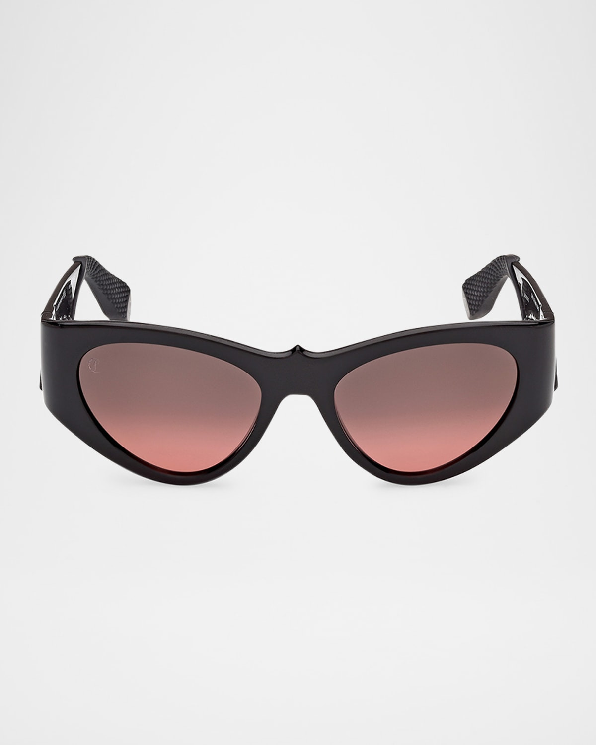 - Christian Louboutin "LB0018W" cat-eye sunglasses in acetate featuring a spike accent above the nose to effortlessly accentuate face features - Loubishark inspired temples add a touch of daring edge - Lens/bridge/temple (in mm): - 54-19-140 - Solid-color lenses - Saddle nose bridge - Signature Loubi red at the inner arms - Acetate - Spot clean - 100% UVA/UVB protection - Made in Italy - Proposition 65 warning for California residents