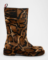 Christian Louboutin "Bloon" boots in natural and dyed calf hair (Italy) Chunky heel Round toe Sits high on the leg Pulltab at backstay Signature Loubi red leather outsole Made in Italy