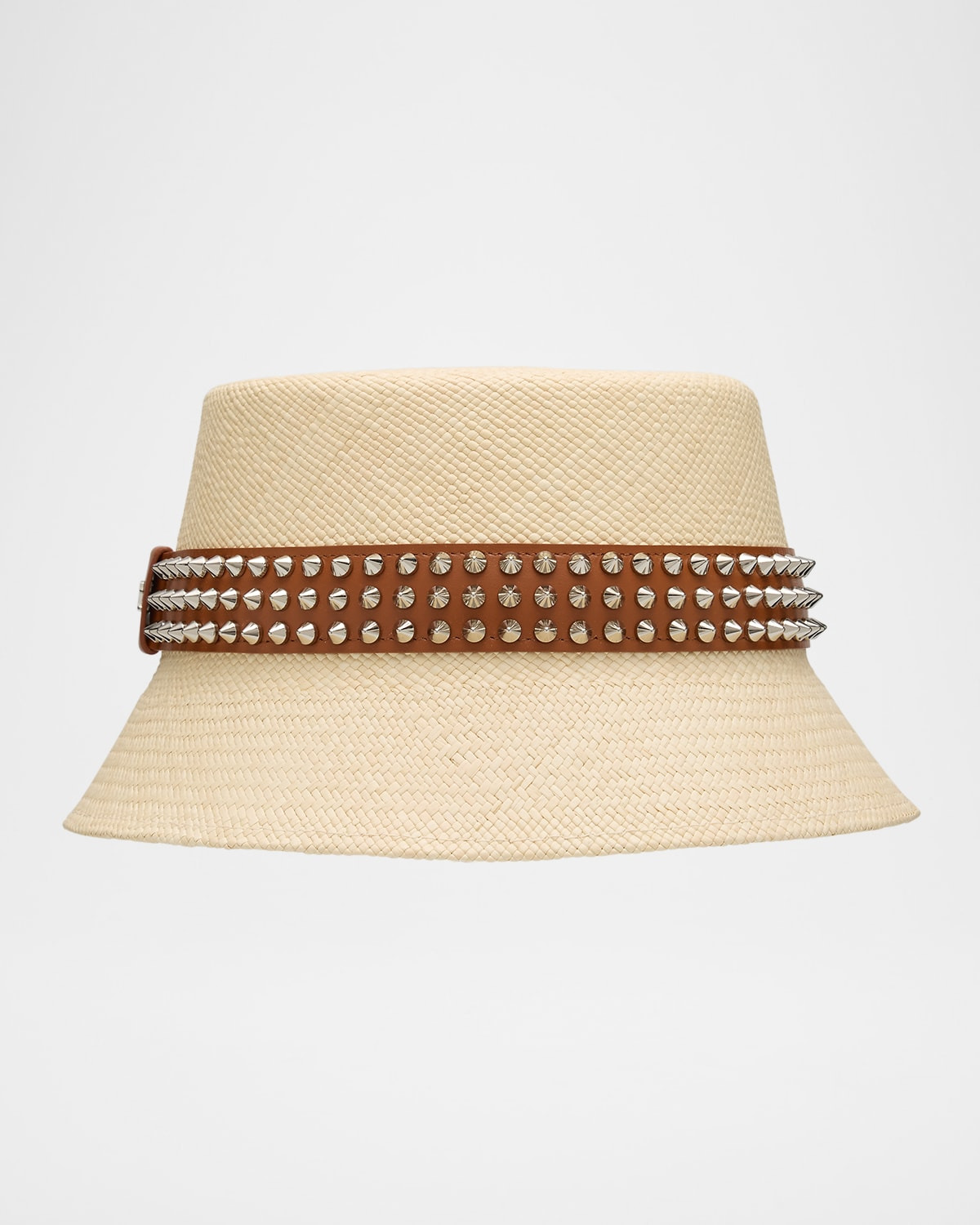 - Christian Louboutin "Bobino Spikes" Panama hat in straw featuring a leather hat band adorned by the signature spikes - Flat crown - Downturn brim - Straw/leather - Made in Italy