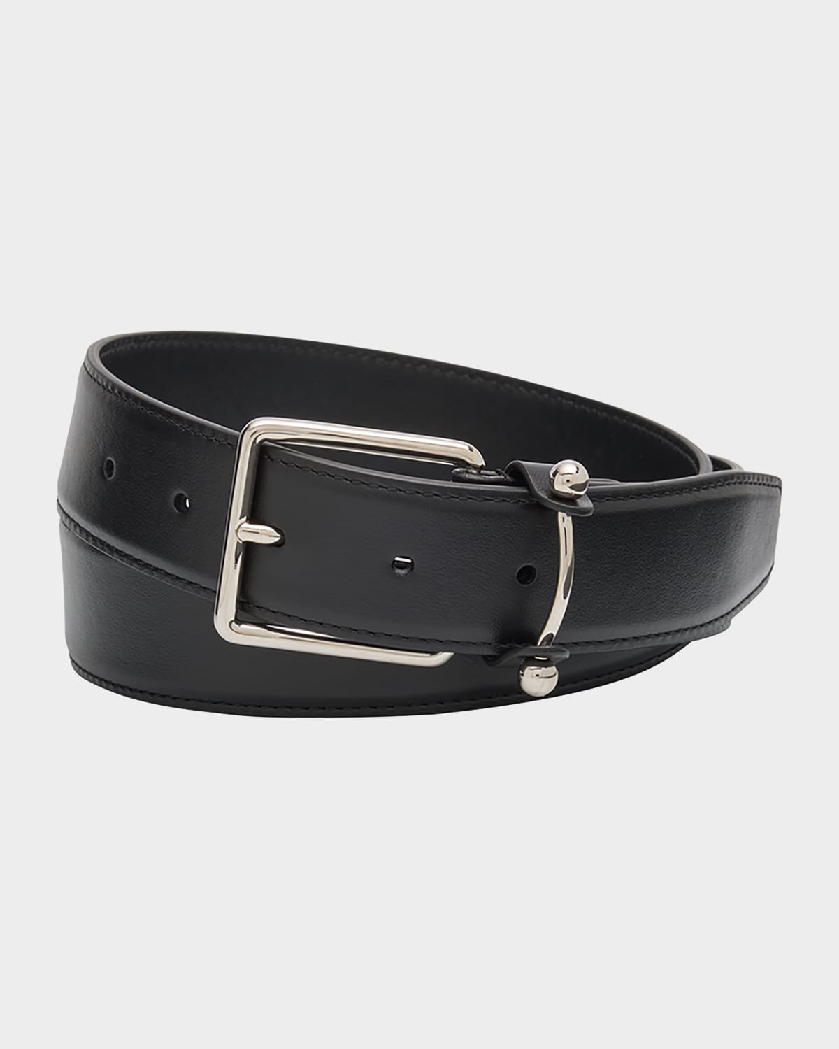 - Christian Louboutin "Chambeliss" belt in calf leather - Approx. 1.2"W - Features a removable silvertone pin with crystal-embellished ends - Sivertone prong buckle - Adjustable fit - Leather - Made in Italy