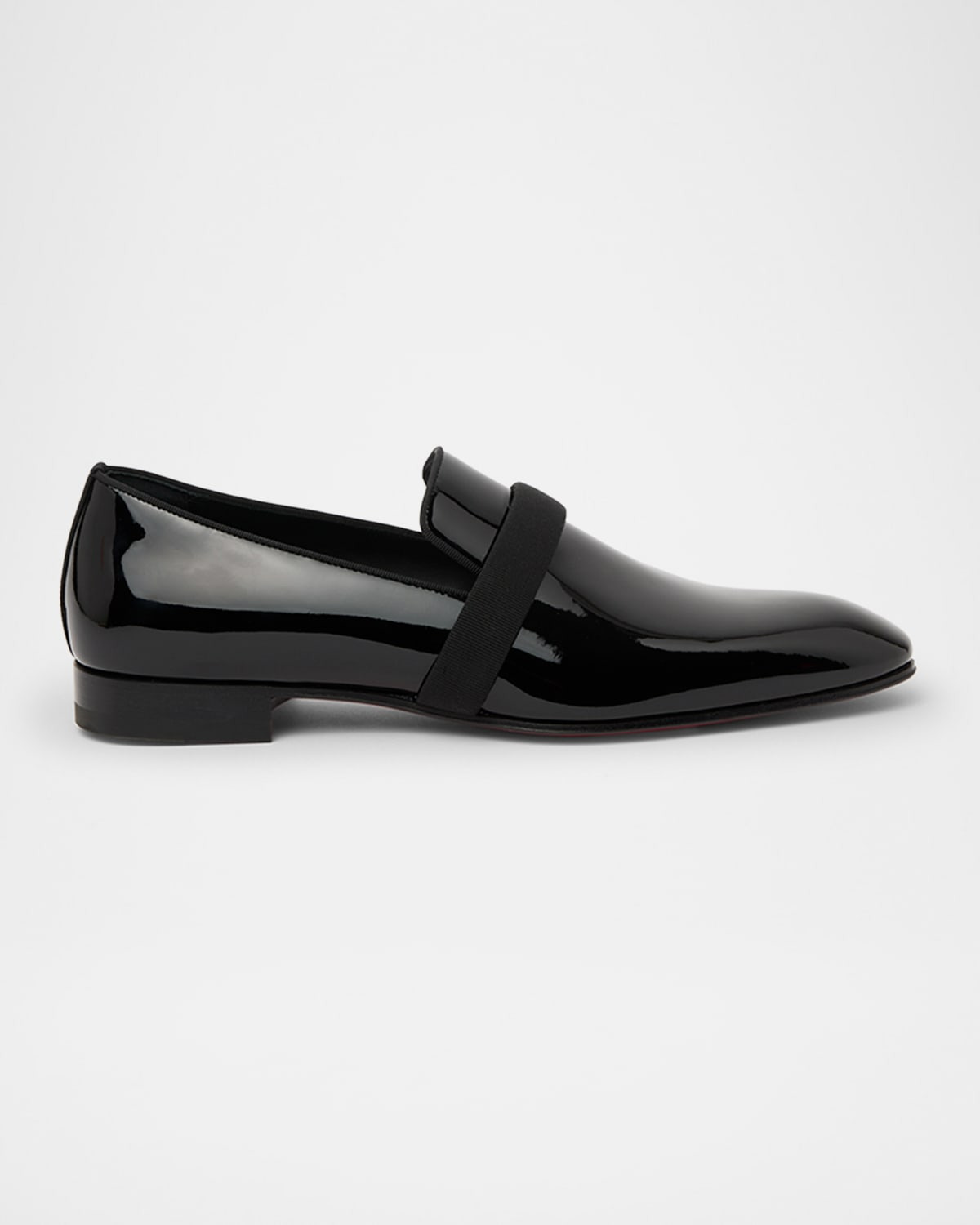 - Christian Louboutin "Dandydeco" loafers in glossy patent leather - Stacked heel - Round toe - Grosgrain strap - Notched vamp - Signature Loubi red leather/rubber outsole - Slip-on style - Made in Italy