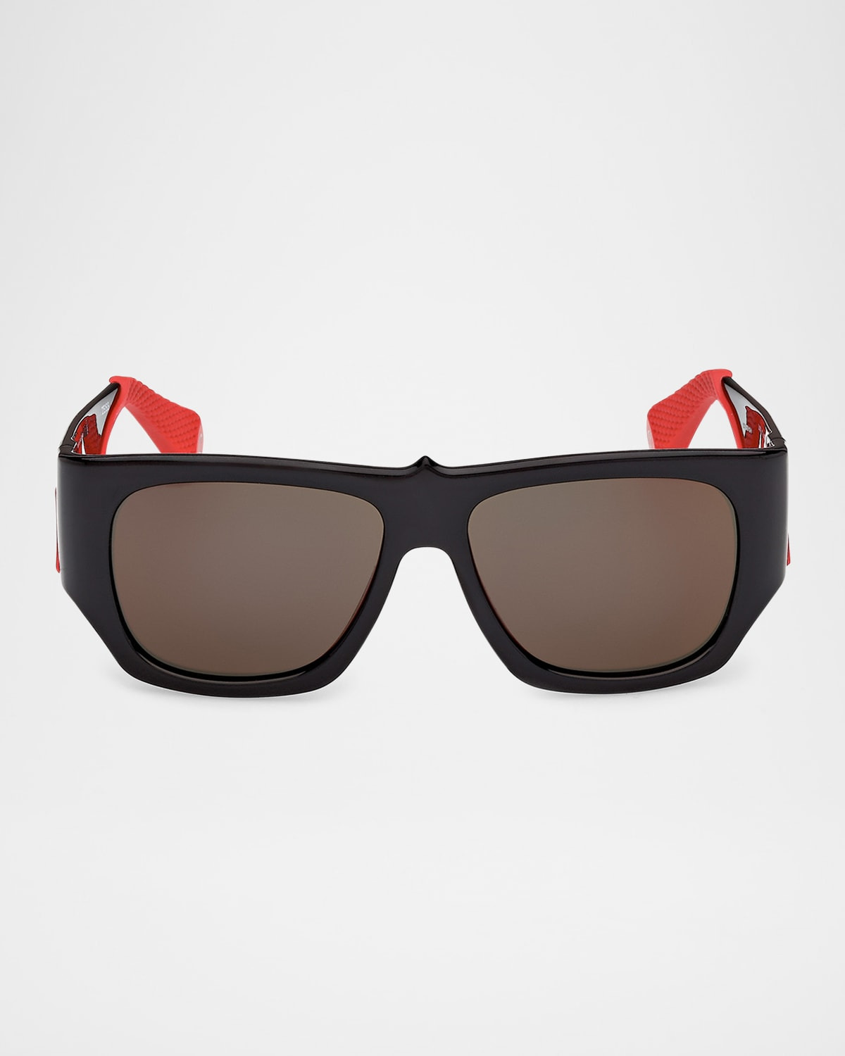 - Turn heads with Christian Louboutin's "LB0016M" square sunglasses, featuring a spike above the bridge and wavy arms that form a unique silhouette that effortlessly accentuates facial features. - Lens/bridge/temple (in mm): - 57-15-140 - Solid-color lenses - Monogram on the right lens - Fixed nose pads - Wide, wavy arms accented in signature Loubi red - Curved, capped temple tips with monogram logo - Acetate - Spot clean - 100% UVA/UVB protection - Made in Italy - Proposition 65 warning for California residents