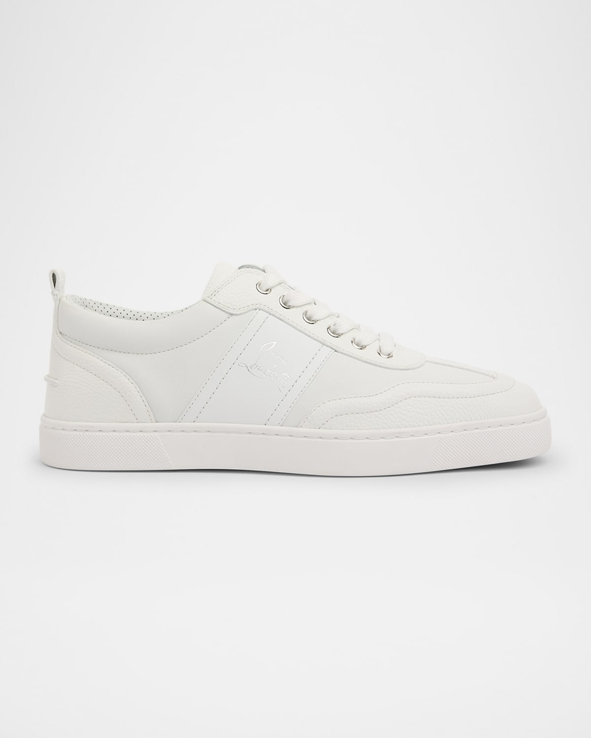 - Christian Louboutin "Retero" low-top sneakers in grained calf leather - Flat heel - Round toe - Lace-up vamp - Metallic embossed logo at side - Padded collar - Pull-tab at backstay - Signature Loubi red polyurethane outsole - Made in Italy
