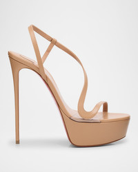 - Christian Louboutin platform sandals in smooth goatskin leather - 6.00 in / 150 mm stiletto heel - Open toe - Asymmetrical slingback strap - Signature red leather outsole - Lining: Leather - Made in Italy