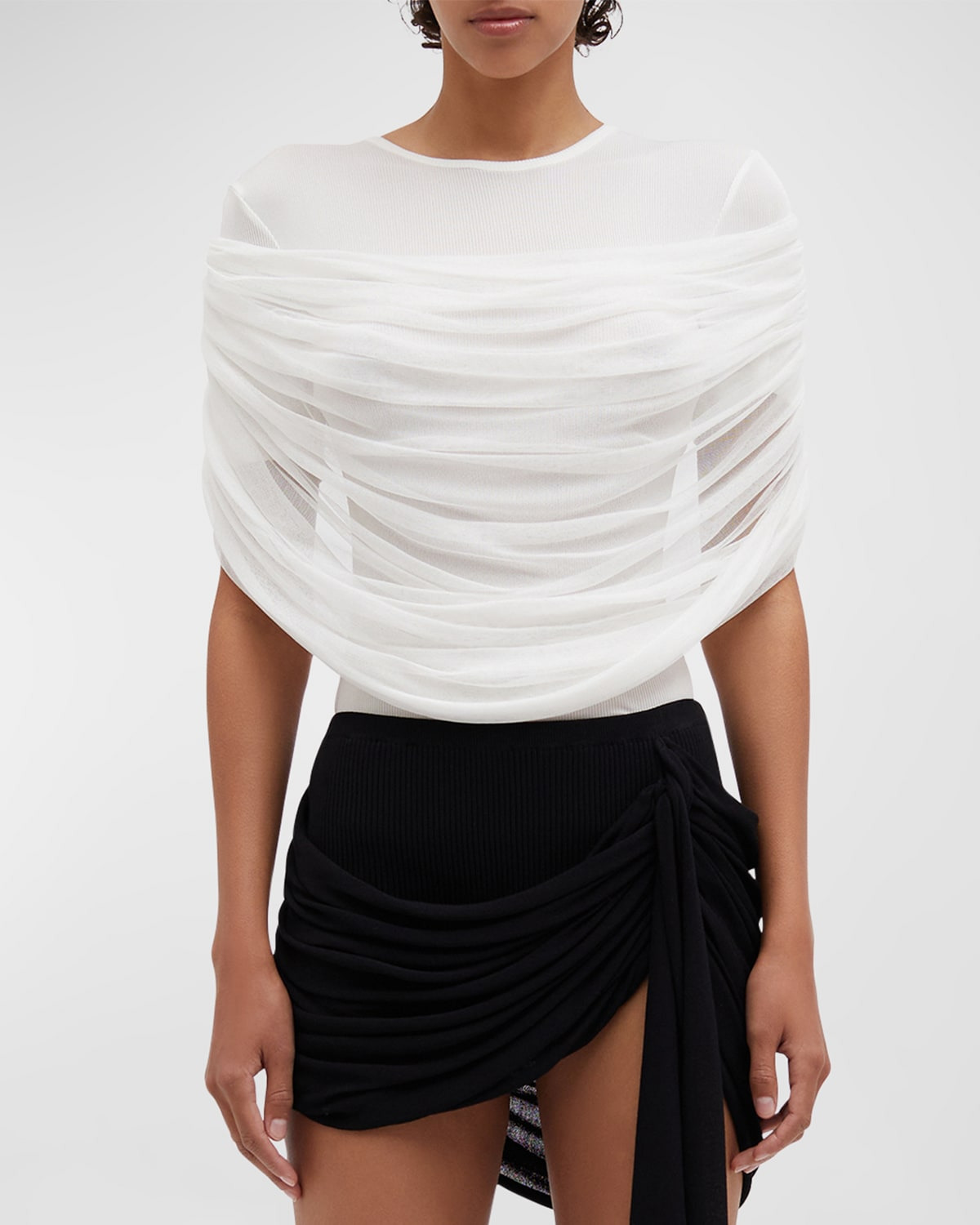 Christopher Esber "Sonora" Tshirt featuring a draped veiled front High neckline Short sleeves Fitted Pullover style Viscose Imported