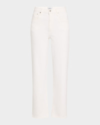 - Citizens of Humanity "Palma" jeans in crisp white denim - Approx. 11" rise; 27.5" inseam - High rise - Five-pocket style - Straight legs - Ankle length - Button/zip fly; belt loops - Cotton/polyester/elastane - Imported