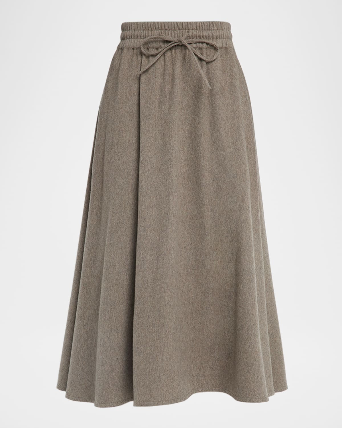 Brushed Wool-Cashmere Drawstring Maxi Skirt