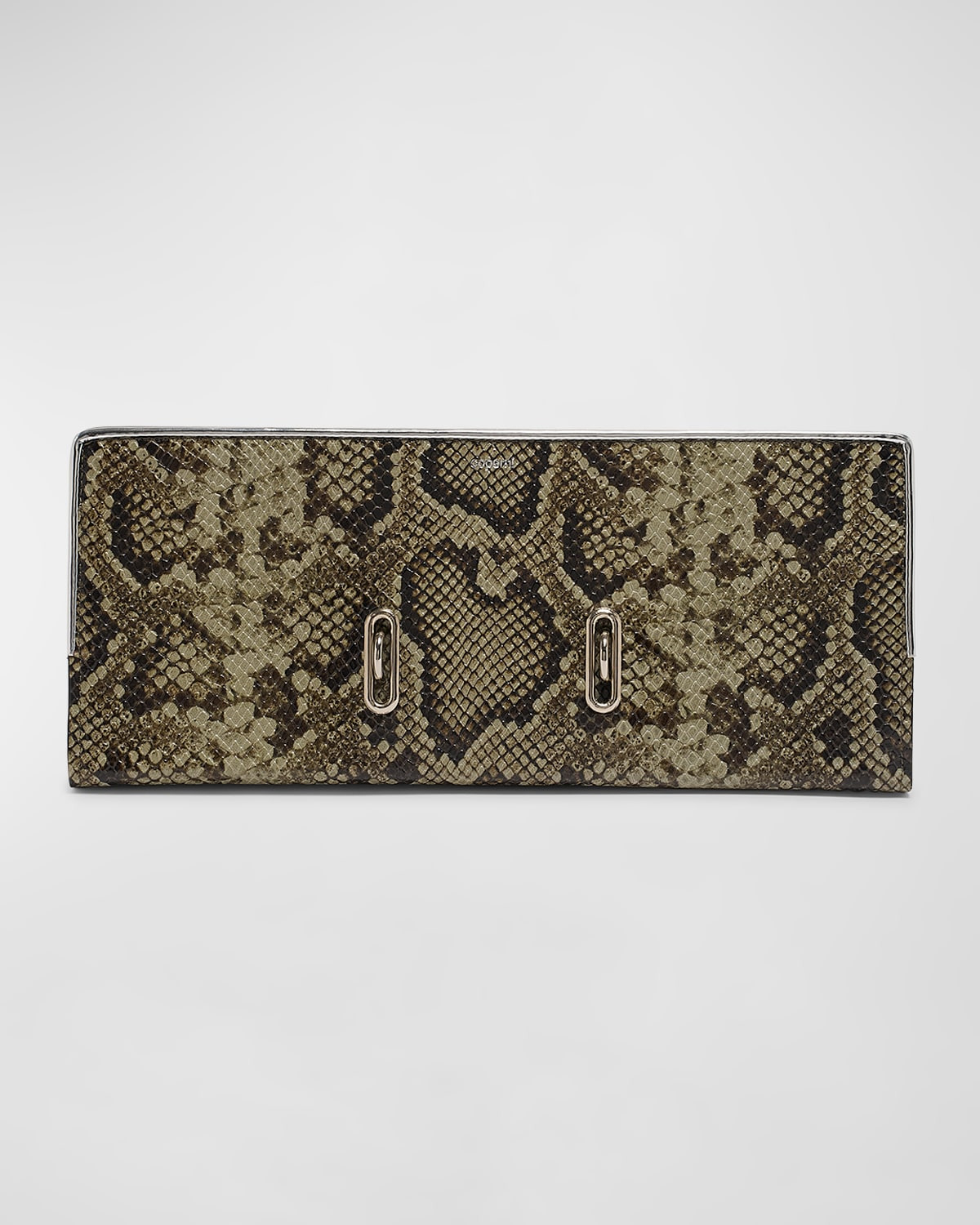 - Coperni "Binder" clutch bag in python-printed leather - Structured top - Lining: Polyurethane - Approx. 5.3"H x 12.6"W x 1.8"D - Spot clean - Made in Italy