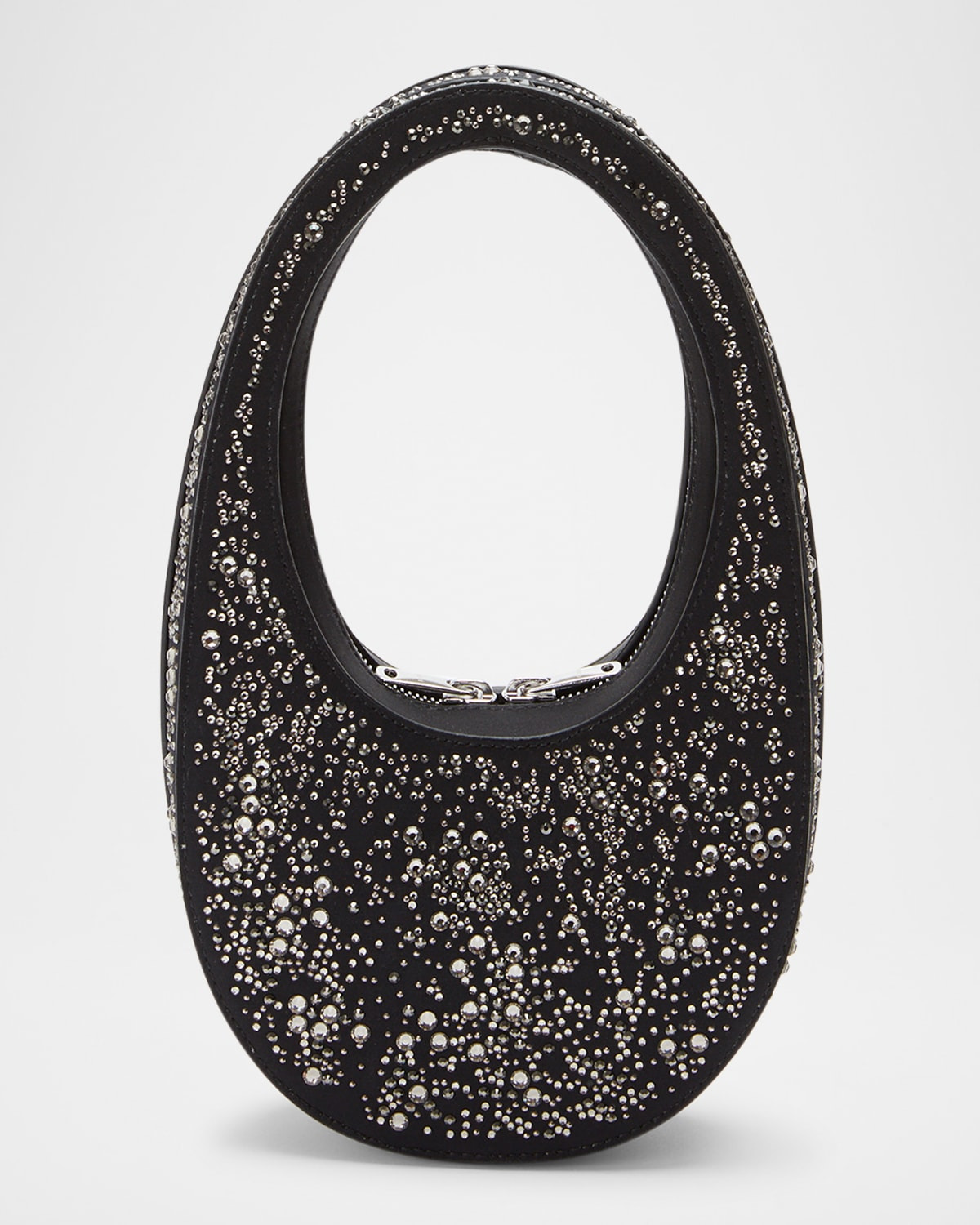 - Coperni "Swipe" crystal-embellished fabric oval top handle bag is inspired by an iPhone's 'swipe to unlock' icon. - Structured top - 360° two-way zip top closure - Lining: Polyurethane - Approx. 10.6"H x 6.3"W x 2.4"D - Cotton/polyester/elastane - Made in Italy