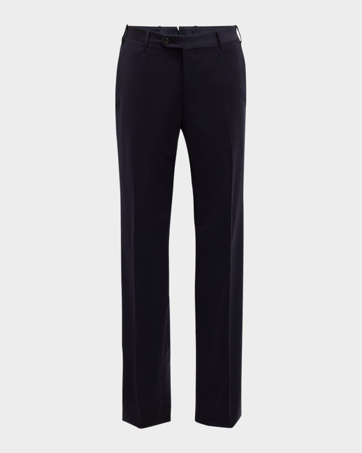 - Corneliani trousers in solid wool twill - Regular rise - Zip fly with extended button closure - Flat front - Side slip pockets - Back welt pockets - Full length - Straight legs - Made in Italy - Model is 6'1"/185cm.