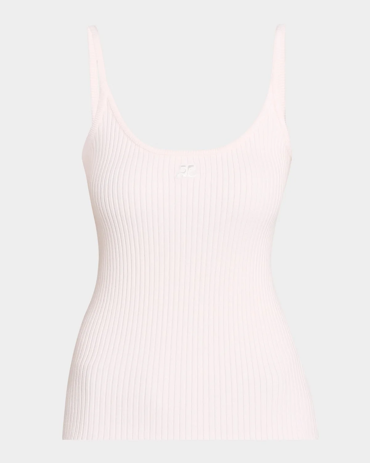 Courreges ribknit tank top with logo detail Scoop neckline Sleeveless Slim fit Pullover style Viscose/polyester Made in Bulgaria
