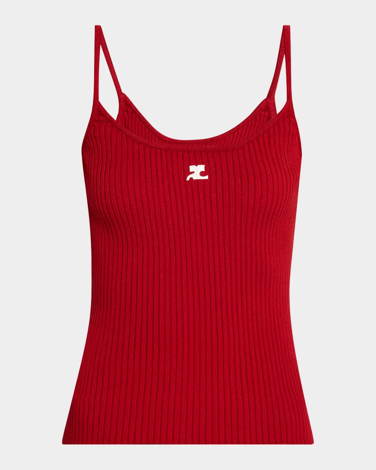 - Courreges rib-knit tank top with logo detail - Scoop neckline - Sleeveless - Slim fit - Pullover style - Viscose/polyester - Made in Bulgaria