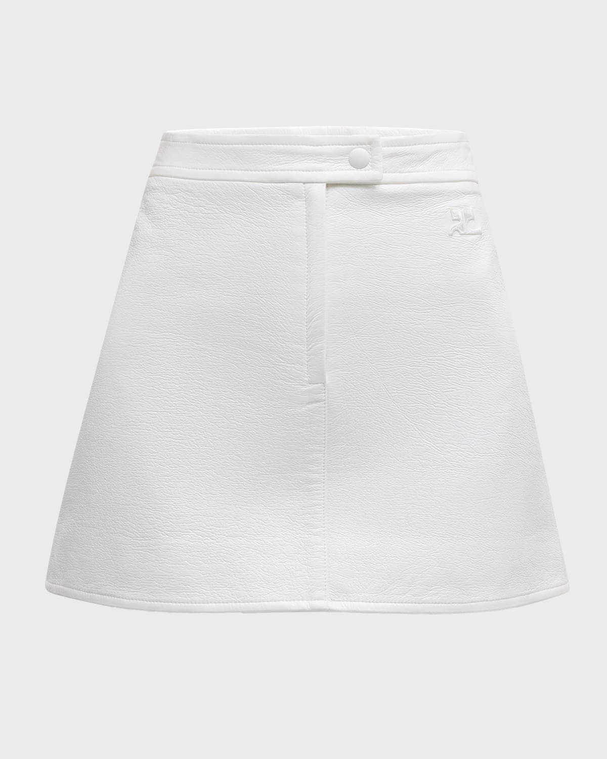 - Courreges "Reedition" vinyl skirt featuring logo embroidered side - High waist - A-line silhouette - Mini length - Snap-tab/zip fly - Cotton/polyurethane/elastane - Lining: Cupro - Imported - Model is 5'10"/177cm.