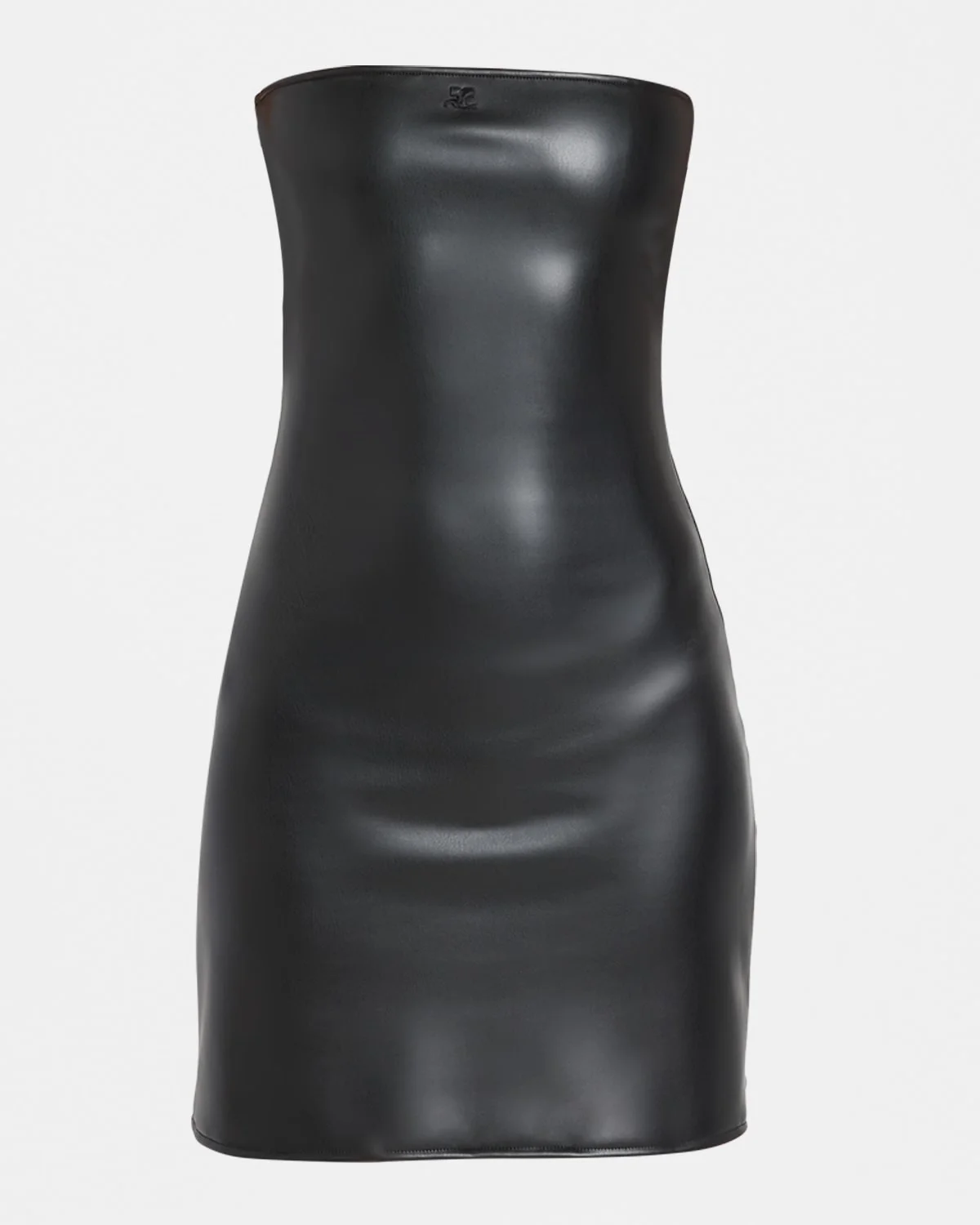 Courreges dress is crafteed of a faux leather featuring a logo embroidered chest and a sheer back strap cutout Strapless neckline Sleeveless Aline silhouette Mini length Hookandeye back strap closure Nylon/polyamide/elastane Made in France