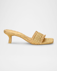 - Cult Gaia "Ada" woven fabric mule sandals with frayed detailing - 2.00 in / 50 mm kitten heel - Open toe - Wide band upper - Slide style - Rubber outsole - Spot clean - Made in Brazil