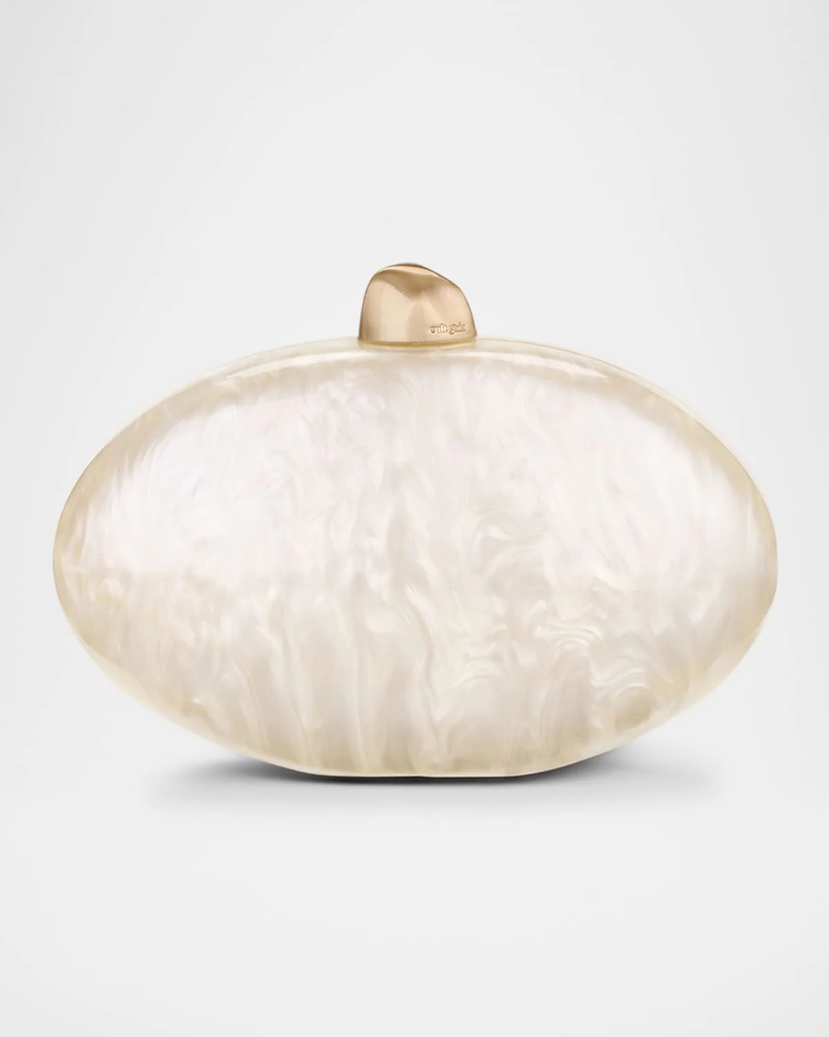 - Cult Gaia "Eviana" clutch bag in marble-effect acrylic - Detachable chain shoulder strap - Can be worn as a clutch or shoulder bag - Framed top with golden clasp closure - Approx. 5.5"H x 4.2"W x 2.6"D - Brass - Spot clean - Imported