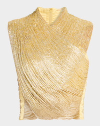 The "Haisley" artisanal top by Cult Gaia flaunts a mesh underlayer with handbeaded arcs crossing over the torso V neckline Sleeveless Cropped length Bodyskimming fit Concealed back zipper Silk Dry clean Imported