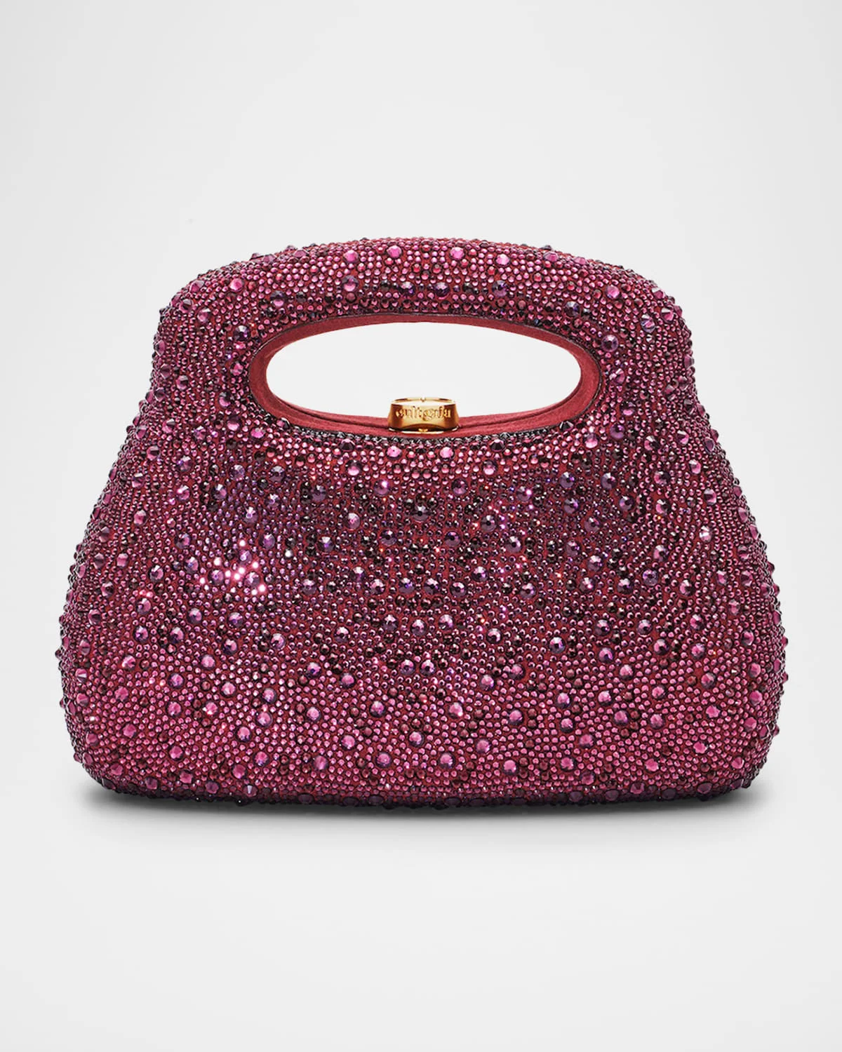 This "Mimi" tophandle bag from Cult Gaia is crafted in suede and covered with lightcatching rhinestones Curved top handle Structured top with magnetic liftclasp closure Lining: Nylon/polyurethane Approx. 6"H x 8"W x 3"D Spot clean Imported